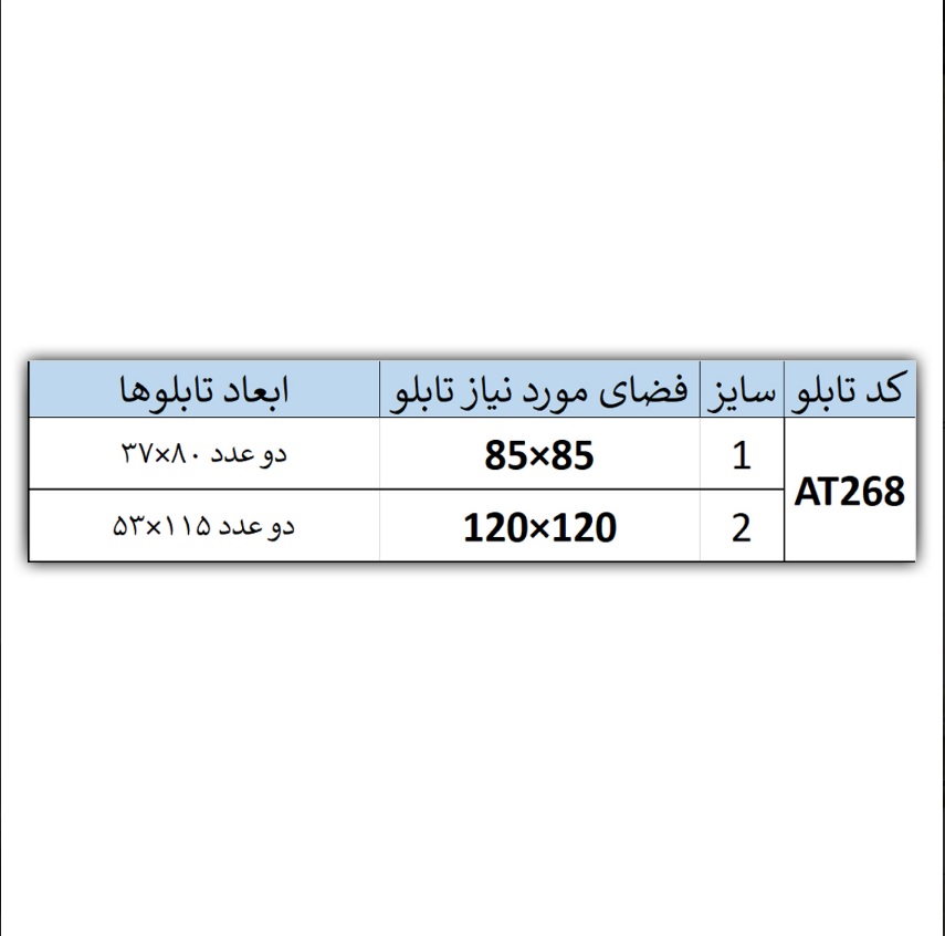 این تابلو در دو سایز 85*85 و 120*120 موجود است،ابعاد ذکر شده فضای اشغال شده(مجموع محیط دو تابلو) توسط هر دو تکه با احتساب فاصله ی 5 سانتی متری بین تابلوها می باشد.برای ثبت سفارش با ابعاد دیگر به واتس اپ پشتیبانی پیام دهید.